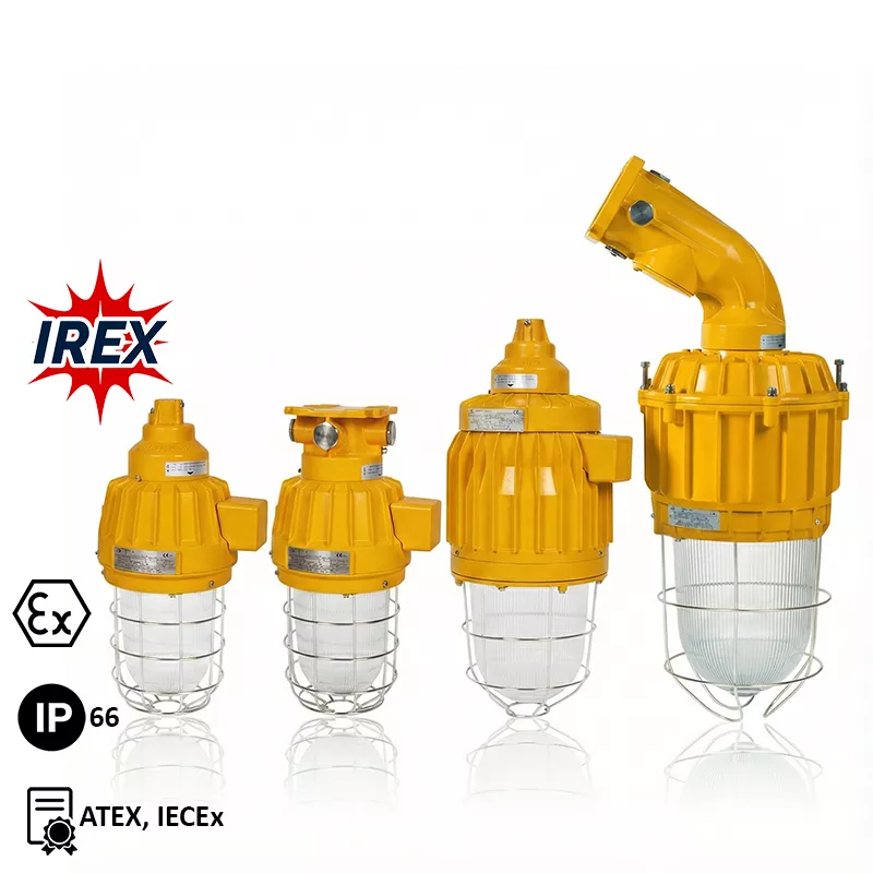 این چراغ دارای محفظه ضد انفجار (Ex d) است که بالاترین سطح ایمنی را در برابر نفوذ گازهای اشتعالزا فراهم میکند.